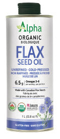Alpha Organic Flaxseed Oil is unrefined, cold-pressed, and made from certified organic Canadian flax seeds. Flaxseed is one of the most concentrated vegan plant sources of omega-3 fatty acids and can help support good health. Enjoy its mild, nutty flavour straight from the spoon or add it to salads and vegetables.