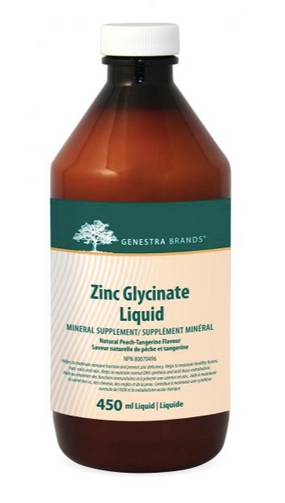 Zinc Glycinate Liquid is a great-tasting mineral formula that provides zinc in the bioavailable form of zinc bisglycinate. Zinc is an important trace element in the body.1 It plays a key role in maintaining immune health by stimulating the production of immune cells, regulating natural killer cell activity and mediating cytokine production.1,2 Clinical research has demonstrated that daily supplementation with zinc helps to maintain immune function in adults and adolescents, as well as in the airways of children.3,4 Zinc also has a long history of use in dermatological health.5 It helps to maintain immune function in the skin, while promoting collagen synthesis to help maintain skin structure.6 Additionally, zinc has a role in maintaining hair and nail health, and maintains bone health by regulating bone formation and resorption.5,7-9 This mineral is also involved in a key buffer system that helps to maintain normal acid-base balance.9 Zinc Glycinate Liquid provides a bioavailable source of zinc to help meet daily zinc requirements. In one randomized crossover trial, zinc bisglycinate was demonstrated to have 43% higher bioavailability than zinc gluconate.10