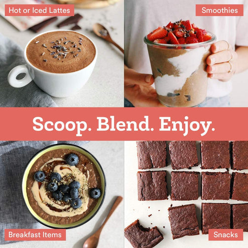 - supercharge everything: add to smoothies, protein shakes, coffee, yogurt, oatmeal, pancakes, baked goods or healthy treats... anything goes!