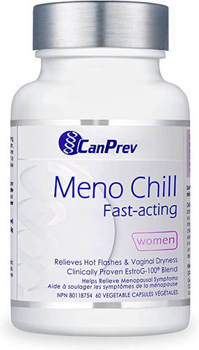 Menopause signals the end of menstruation and occurs when reproductive hormones like estrogen, progesterone, testosterone, follicle-stimulating hormone (FSH) and luteinizing hormone (LH) decline in production. If your daily activities and sleep are being interrupted by uncomfortable symptoms like hot flashes, night sweats, insomnia, fatigue and vaginal dryness, CanPrev’s Meno Chill might be for you.