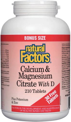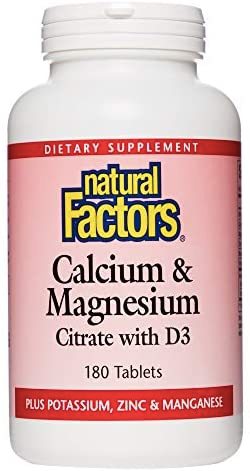 Natural Factors Calcium & Magnesium Citrate with D3 and potassium, zinc & manganese helps in the development and maintenance of bones and teeth. The minerals are in the citrate form, making them more readily absorbable and metabolized by the body. Vitamin D3 is in the cholecalciferol form, which is natural, safe, and highly absorbable.