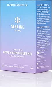 Looking to destress? Maybe you're just looking for a delicious and soothing organic caffeine free herbal blend? Try out Organic Calming Butterfly - the latest adaptogenic wellness tea to join the Genuine Family. Formulated with help from our favourite Registered Holistic Nurtitionist, Jordan Bruce, Organic Calming Butterfly is made using functional adaptogenic botanicals. This herbal tea is designed to keep you calm and help you relax - whether it's in the middle of a stressful morning or at the end of the day. Calming florals play beautifully with hawthorn, spearmint and lemon balm. Organic Calming Butterfly also contains a butterfly pea flower petals that steep a beautiful turquoise.