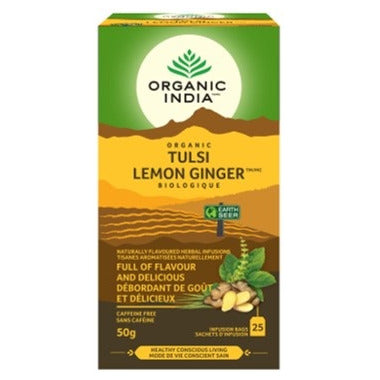 Ingredients: Organic ginger, organic vana tulsi, organic krishna tulsi, organic lemongrass, organic rama tulsi and lemon flavour