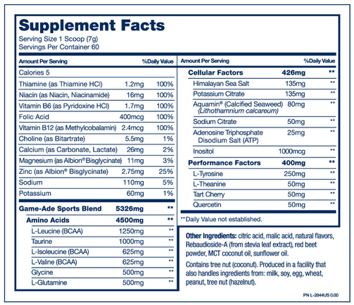 GAME-ADE is more than just a sports drink. This is a revolutionary, elite performance product designed to help enhance the mental focus, endurance, work capacity, and physical output of all athletes. Forged from PVL's guaranteed quality and "banned substance-free" performance values, GAME-ADE contains key ingredients such as Adenosine Triphosphate Disodium Salt (ATP), Tart Cherry, Quercetin, and "Gold Medallion" Certified Albion Minerals to help you to #fliptheswitch.