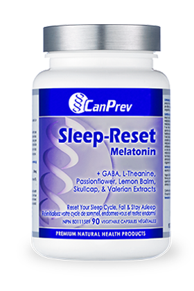 CanPrev’s Sleep-Reset Melatonin can help reduce the time it takes to fall asleep, increase total sleep time, and prevent the effects of jet lag. Formulated with melatonin to help reset the body’s circadian rhythm, along with GABA, l-theanine, passionflower, lemon balm, skullcap and valerian extracts to soothe mental stress that can contribute to sleeplessness. Don’t let a new time zone, jet lag or chronic stress interrupt your body and mind’s most valuable time to rejuvenate. Take at bedtime to fall asleep and stay asleep.
